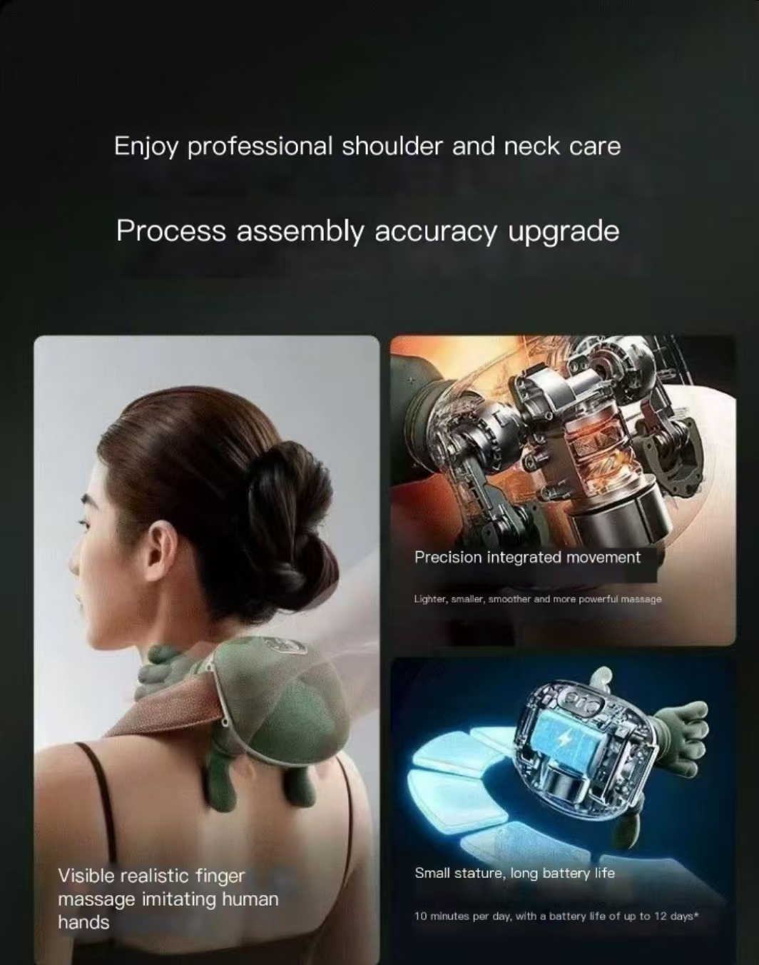 Sore shoulders and neck from sitting for long periods? This shoulder and neck massager is specially designed for office workers and those who frequently look down at screens. It simulates real hand kneading and massage, precisely fitting the shoulder and neck acupoints to deeply relax stiff muscles. With adjustable intensity levels and constant-temperature heat therapy to soothe soreness, it is lightweight and portable, suitable for home, office, or commuting. Just over ten minutes a day can relieve fatigue and discomfort, gently care for your cervical spine, fully relax tense shoulders and neck, and help you easily regain a comfortable state.